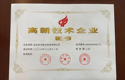 深圳市丰联达科技有限公司荣获高新技术企业